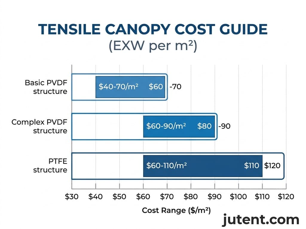 Understanding the cost implications of a tensile carport structure is vital for accurate project budgeting. Pricing for these structures is typically quoted on a per square meter (m²) basis, and several factors influence the final cost. Based on Jutent's experience across 400+ projects in 30+ countries, a realistic range for a standard tensile carport structure, covering a minimum project scope of 100 m², is as follows: