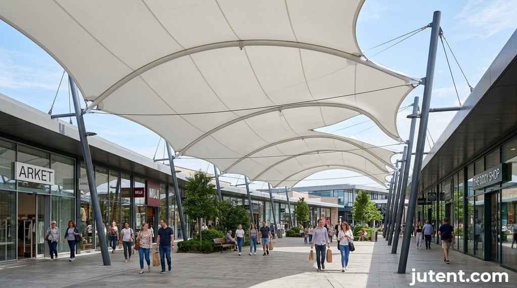 A thorough quotation for retail walkway canopy procurement should clearly itemize all costs and specifications. It should detail the membrane type (e.g., 1050 g/m² PVDF), steel grade (e.g., Q235B), and surface treatment (e.g., hot-dip galvanizing or epoxy zinc-rich primer + fluorocarbon topcoat). The quotation should specify the total area in square meters and the corresponding unit price. For a PVDF membrane, simple form, expect prices in the range of $40–$70/m², while complex forms might range from $60–$90/m². PTFE membrane structures typically add approximately $20/m² to these ranges. Remember, the minimum project scope for most manufacturers is 100 m².