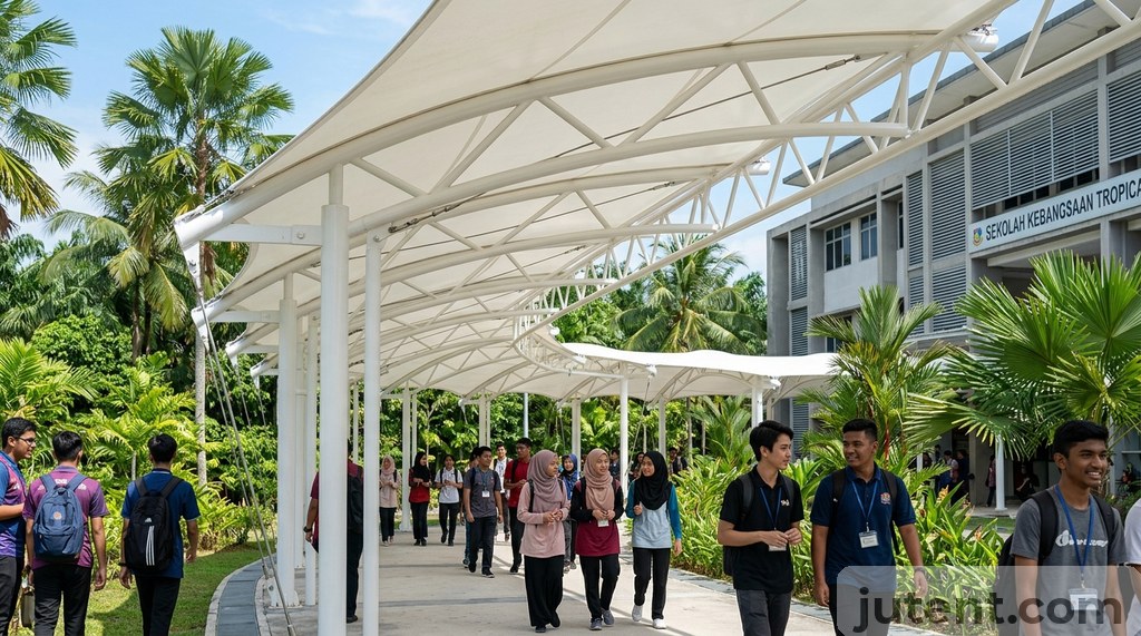 In Manila, a school walkway canopy must survive 250 km/h typhoon winds. In Kuala Lumpur, it faces year-round UV Index 11+ exposure. In Jakarta, it must channel 300mm of monthly monsoon rainfall without overwhelming the campus drainage system. A school walkway canopy Southeast Asia installation is not a standard shade sail—it is a primary structural asset that requires specific engineering for extreme weather. This guide covers what contractors in the Philippines, Malaysia, and Indonesia need to specify for school covered walkway projects to ensure structural survival, membrane longevity, and local code compliance before submitting a tender. Relying on generic architectural concepts rather than region-specific engineering data guarantees budget blowouts during the procurement phase. Understanding the exact material grades and structural loads required will protect your project margins.