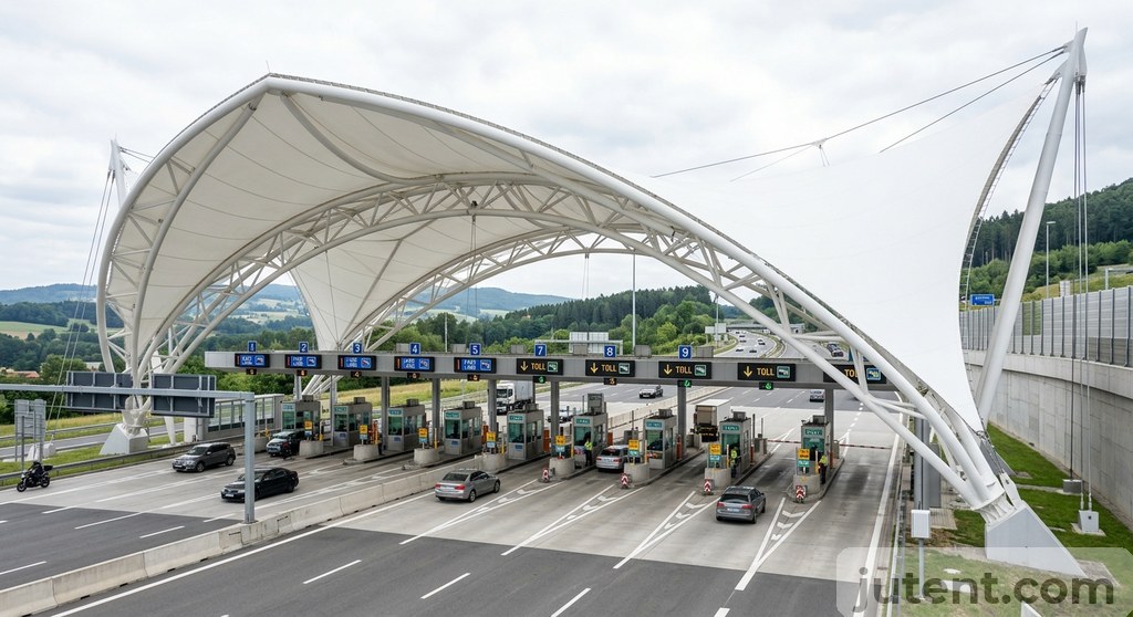 A small, two-lane provincial toll booth (approximately 150 square metres) will sit at the higher end of the per-square-metre cost spectrum. The fixed costs of engineering design, structural analysis, and machine setup for cutting the membrane are distributed over a smaller area. In these applications, supply-only costs often hover around $60 to $70/m².