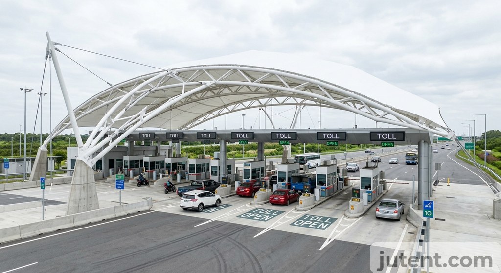 A toll plaza operates in one of the most aggressive environments possible for a lightweight structure. The canopy must provide continuous weather protection for toll operators and sensitive electronic equipment while withstanding constant exposure to diesel exhaust, brake dust, and high-velocity crosswinds generated by heavy goods vehicles (HGVs). Standard commercial shade structures fail rapidly under these conditions because they are not engineered for the continuous aerodynamic buffeting and chemical exposure inherent to highway infrastructure.