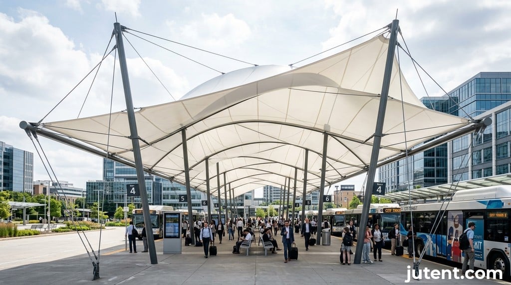 This commitment to material quality ensures that every bus station canopy supplied by Jutent is built to withstand the test of time and environmental challenges.