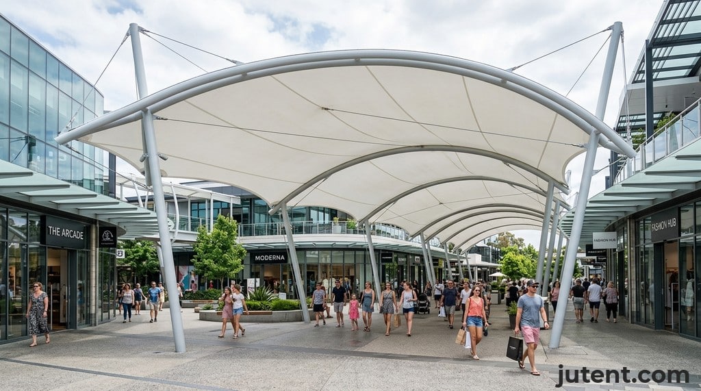 The longevity and performance of any tensile structure, especially a school walkway canopy, hinge on the quality of its core components: the membrane and the steel framework. Jutent prioritizes premium materials to ensure maximum durability and safety.