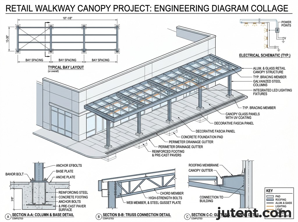 As a leading retail walkway canopy supplier, Jutent understands that thorough engineering documentation is the backbone of any successful international project. Our commitment to transparency and technical excellence ensures that contractors receive all necessary information to facilitate smooth approvals, fabrication, and installation. For export projects, Jutent can provide design drawings, calculations, material specifications, installation manuals, and free remote guidance, subject to project scope and contract terms. This suite of documents is meticulously prepared by our in-house engineering team, ensuring compliance with international standards and best practices.