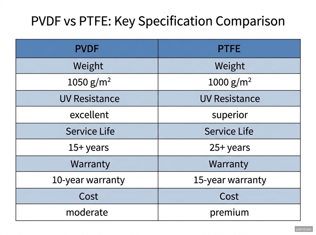 A: High-grade PVDF (e.g., a premium PVDF with advanced surface treatments) with a UV stabilisation index of 95%+ is standard for UAE projects. This ensures excellent longevity and performance against intense solar radiation. For projects requiring a 25+ year design life or higher fire ratings, PTFE membrane is the superior choice. PTFE offers exceptional UV stability and maintains its structural integrity over decades in the harsh Gulf climate, making it a preferred option for long-term investments.