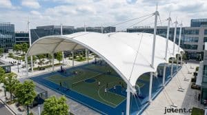 The membrane is the heart of any tensile structure, and its quality directly impacts the structure's longevity, performance, and aesthetic appeal. Jutent prioritizes high-grade membranes, primarily 1050 g/m² PVDF and PTFE. We work with reputable membrane manufacturers, ensuring that all materials come with verifiable test certificates. These certificates confirm the membrane's physical properties, including tensile strength, tear resistance, UV stability, and fire retardancy, all crucial for meeting project specifications and safety standards.