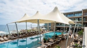 For a tensile membrane structure with minimal steel support, such as a simple shade sail, costs can start from $30–$50/m². However, most hotel applications require more robust, permanent structures.