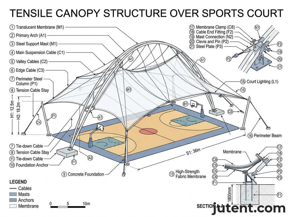 Deciding between a tensile canopy and a traditional steel roof for a sports court is a critical choice for contractors and developers. The “best” option isn't universal; it depends heavily on project-specific factors like budget, desired aesthetic, local climate, and long-term operational costs. While both provide essential shade and weather protection, their fundamental design principles lead to significant differences in performance, cost implications, and installation complexity. Understanding these distinctions upfront can prevent costly redesigns, delays, and unexpected maintenance burdens down the line. This comparison aims to equip you with the technical insights needed to make an informed decision, ensuring the chosen structure aligns perfectly with your project's objectives and constraints. Based on Jutent's experience across 400+ projects in 30+ countries, we've seen firsthand how the right choice can enhance project success.
