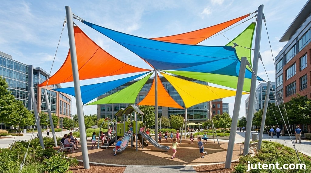 Tensile canopies, by contrast, are engineered structures designed for much larger spans. Utilizing high-strength membranes like PVDF or PTFE, supported by reliable steel frameworks (Q235B, Q355B), they can cover vast areas without intermediate supports. This allows for unobstructed play zones and greater design freedom. For example, a single tensile canopy can easily span 20m x 30m or more, a feat impossible for a single playground sail shade structure. The choice between a series of smaller shade sails and a single, expansive tensile canopy hinges on the required coverage area, desired aesthetic, and long-term durability goals. Based on Jutent's experience across 400+ projects in 30+ countries, the cost-effectiveness of a tensile canopy often becomes apparent for areas exceeding 100 m², offering superior longevity and performance.