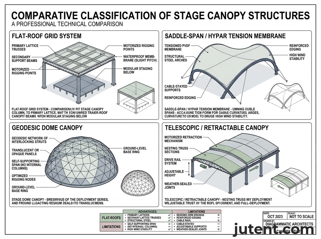 Types of Stage Canopies: Tensile, Frame, and Hybrid