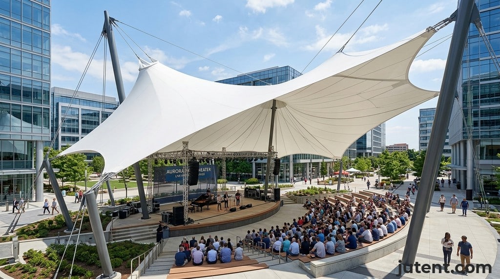 The longevity and performance of an amphitheater tensile canopy are directly tied to the quality of its membrane and steel components. As a reputable amphitheater tensile canopy factory, Jutent prioritizes the use of high-grade materials and proven surface treatments to ensure durability and aesthetic appeal.