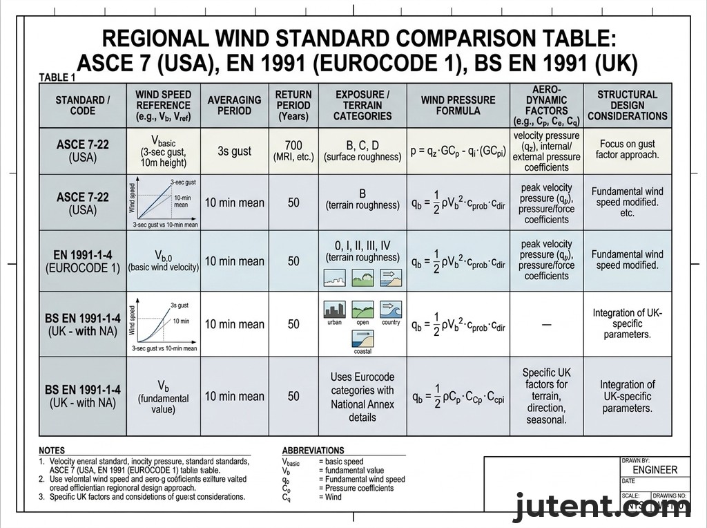 For Australia and New Zealand, the primary standard is AS/NZS 1170.2: Structural design actions – Wind actions. This standard provides detailed guidance on determining design wind speeds based on region, terrain category, shielding, and topographic factors. It specifies different return periods for ultimate and serviceability limit states, typically a 500-year return period for ultimate wind loads on critical structures.