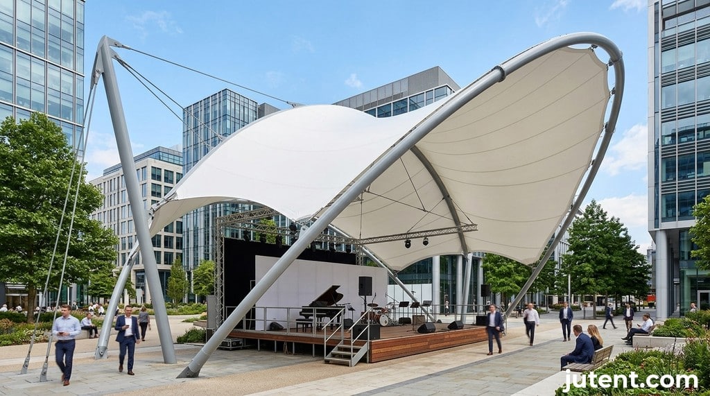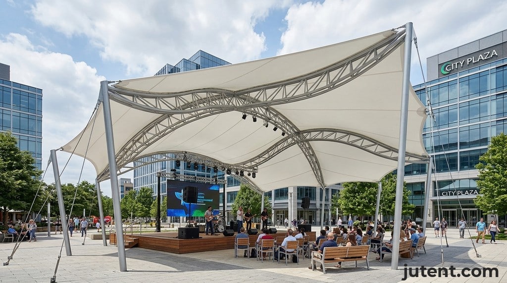 A: The typical cost for a school stage canopy varies based on size, complexity, and materials. For a small to medium-sized school stage, approximately 50–100m², using a standard PVDF membrane and a simple structural form, the supply cost (ex-factory) generally ranges from $8,000–$20,000 USD. This benchmark covers the structure itself; additional costs for shipping, installation, and local site preparation (like foundations) would be separate. Jutent offers a 1-year warranty on the overall project, with a 10-year warranty on PVDF membranes.