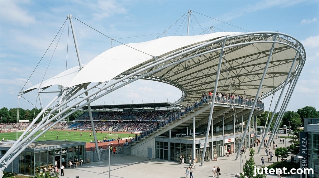 The integration of acoustic liners requires careful consideration during the initial stadium tensile roof design. It impacts the overall weight of the structure, the attachment methods, and the ventilation strategy for the cavity between the main membrane and the liner. Based on Jutent's experience across 400+ projects in 30+ countries, incorporating acoustic considerations early in the design phase is crucial for achieving optimal performance and avoiding costly retrofits.