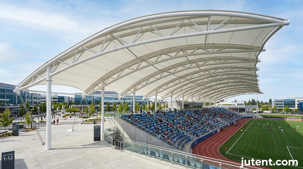 The roar of the crowd reverberates through the stadium, a wave of sound amplified by the very structure designed to shelter them. Above, a vast expanse of membrane fabric billows gently, a testament to precision engineering and architectural vision. This isn't just a cover; it's a meticulously designed stadium canopy tensile structure, a critical component of the modern sporting experience. For contractors and stadium developers, understanding the distinction between a basic grandstand cover and a professional-grade tensile canopy is paramount, especially when specifying a large stadium shade structure. The engineering complexity, material science, and regulatory hurdles involved in a professional specification demand a detailed approach, far beyond simply providing shelter from the elements.