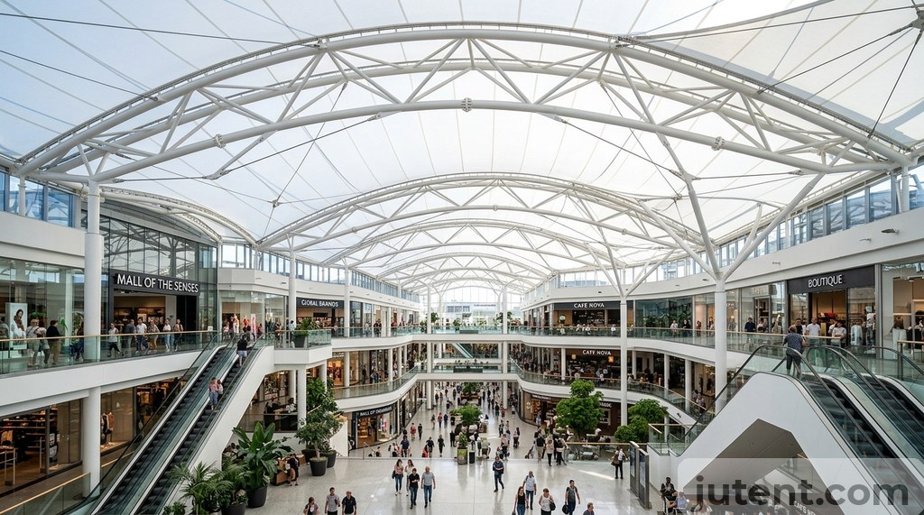 For example, a recent 1,200m² shopping mall atrium required a continuous barrel-vault tensile structure. Because the steel arches and membrane panels were highly repetitive, the manufacturing efficiency kept the material and fabrication costs strictly controlled. For a deeper dive into scaling these structures, review our Atrium Tensile Skylight Guide.