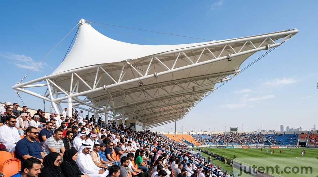 A grandstand canopy in the Middle East faces 45°C+ ambient temperatures, UV indices consistently exceeding 11, and abrasive sand-laden winds—environmental loads that standard European or North American specifications simply do not cover. When contractors import generic structural designs for regional stadium and spectator facilities, the results often include premature tensile membrane degradation, inadequate wind uplift resistance, and catastrophic drainage failures during sudden winter downpours. This guide details exactly what engineering teams in the UAE, Saudi Arabia, and Qatar must specify differently to ensure structural integrity and longevity in the Gulf climate. Establishing these critical parameters before the tender stage prevents costly re-engineering, eliminates supply chain delays, and ensures the facility secures local municipal approval on the first submission.