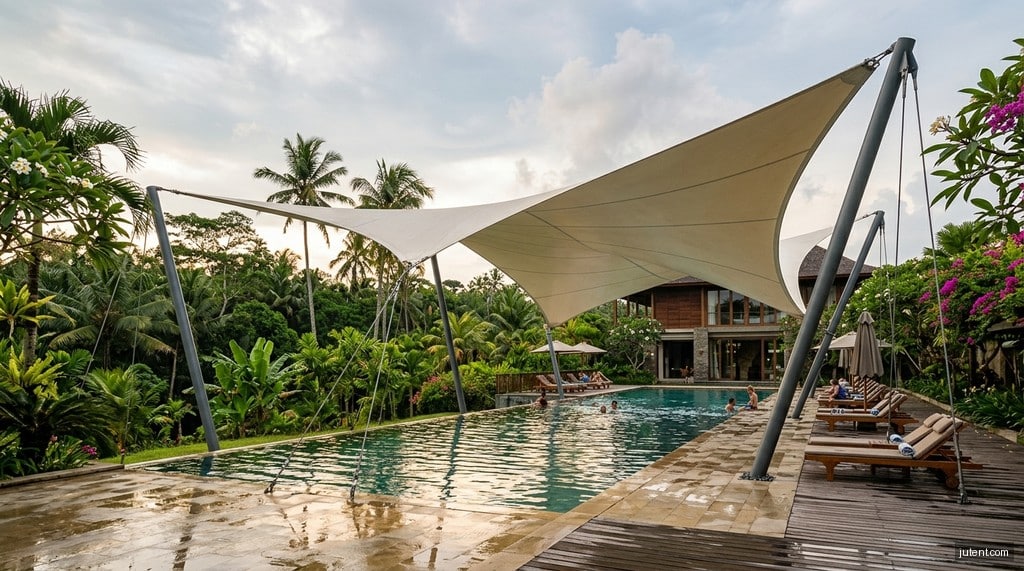 Pool Tensile Shade Structures in Southeast Asia: Design for Typhoon Loads & Tropical UV