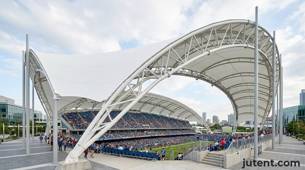 Architectural Impact and Branding: Grandstand canopies are not just functional; they are visually striking architectural elements. Their unique forms can elevate the aesthetic appeal of a sports complex, creating a distinctive landmark that reinforces the facility's brand identity. Based on Jutent's experience across 400+ projects in 30+ countries, a well-designed canopy can transform a utilitarian grandstand into an iconic structure.