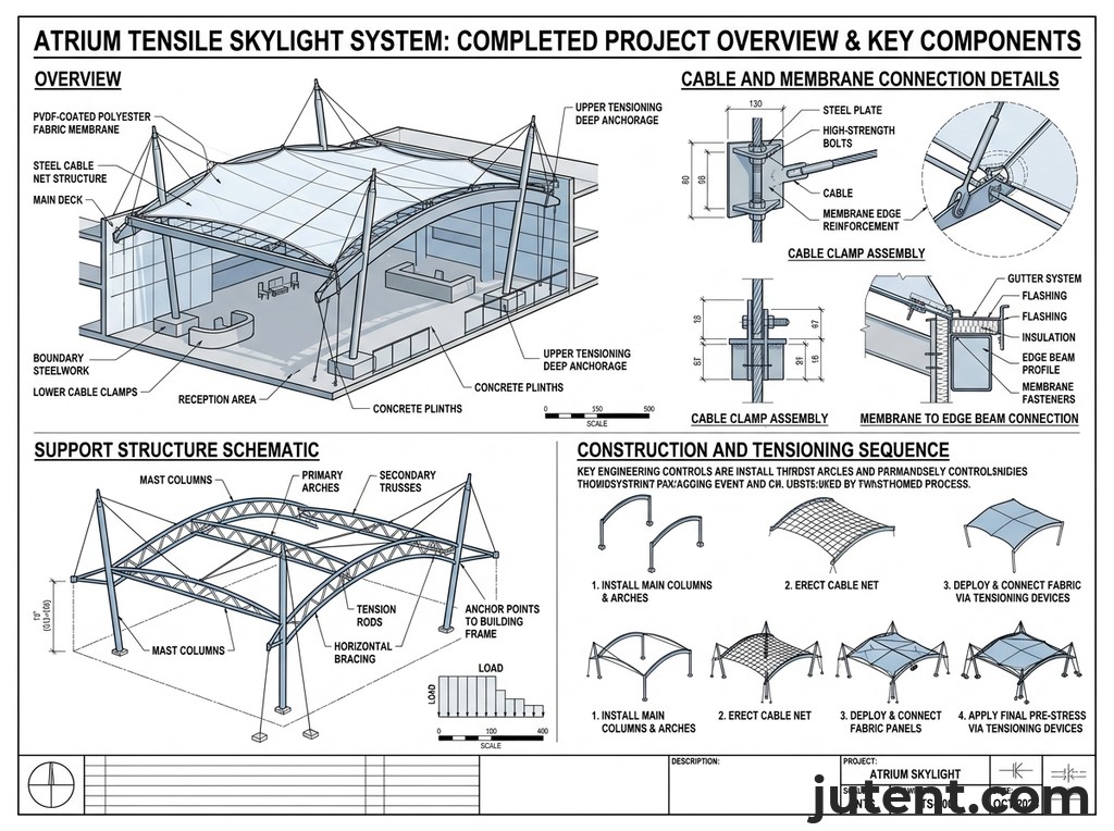 Detailed and accurate engineering documentation is non-negotiable for any international construction project. As an atrium tensile skylight supplier, Jutent prioritizes thorough documentation to ensure compliance, facilitate smooth customs clearance, and provide clear guidance for installation. For export projects, Jutent can provide design drawings, calculations, material specifications, installation manuals, and free remote guidance, subject to project scope and contract terms. This commitment to transparency and detail is fundamental to our operations as an atrium tensile skylight manufacturer.