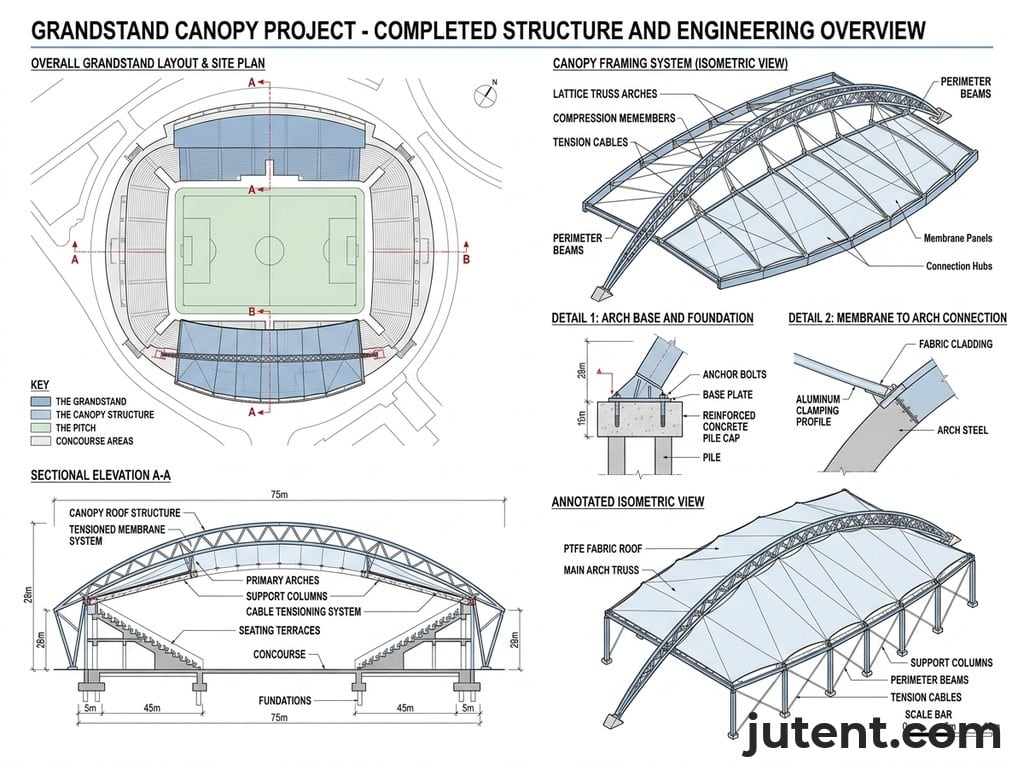 Contractors understand that the true cost of a project encompasses more than just material and fabrication expenses. When sourcing a grandstand shade structure manufacturer, factors like engineering accuracy, material quality, logistical reliability, and post-delivery support are paramount. A delay due to incorrect documentation, a structural issue from substandard materials, or a complicated installation process can quickly erode profits and damage reputations. Therefore, the decision framework for selecting a grandstand canopy supplier must prioritize a holistic view of value. This includes a supplier's ability to provide detailed engineering, certified materials, efficient production, and clear installation guidance. For example, ensuring that a tensile grandstand supplier China-based can meet international standards and provide clear communication channels is essential for smooth project execution. Based on Jutent's experience across 400+ projects in 30+ countries, we know that contractors value predictability and accountability above all else. They need a partner who can consistently deliver on promises, ensuring the grandstand canopy integrates seamlessly into the broader stadium or facility project. Grandstand Canopy
