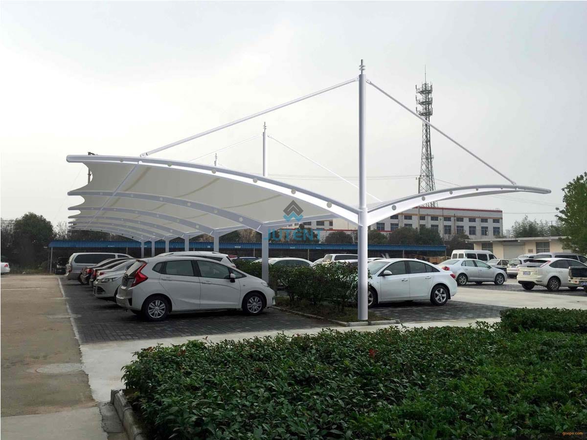 Expansive double bay cantilever tensile fabric carport canopy