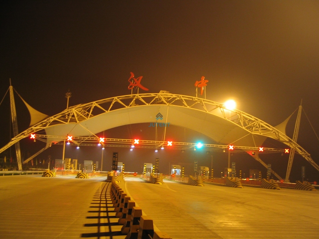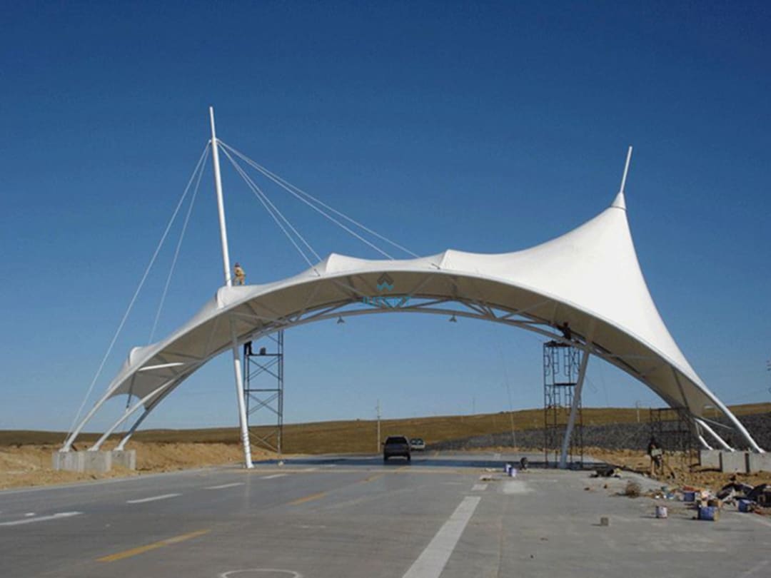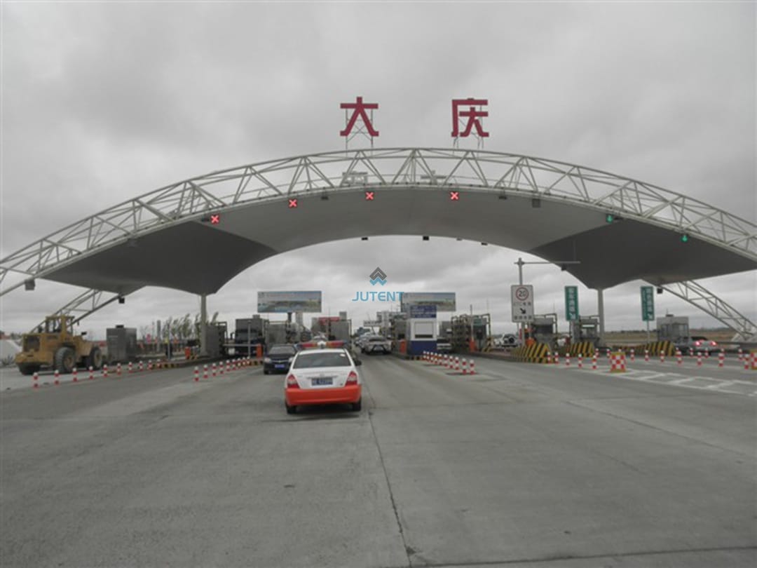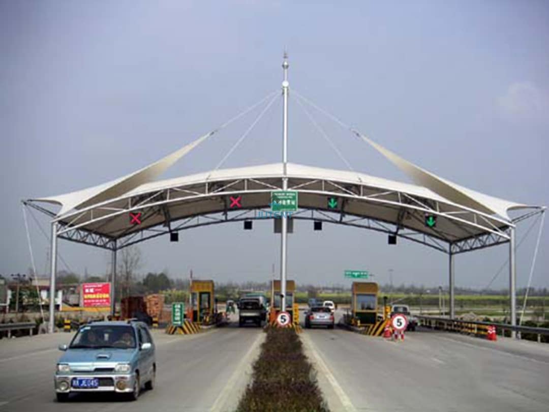 Engineered PTFE and PVDF curved membrane canopies offer durable, high-clearance weatherproof protection for highway infrastructure.