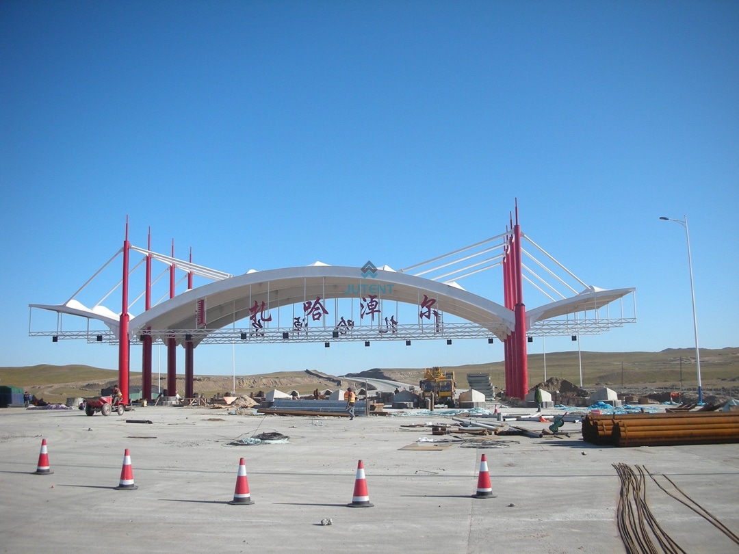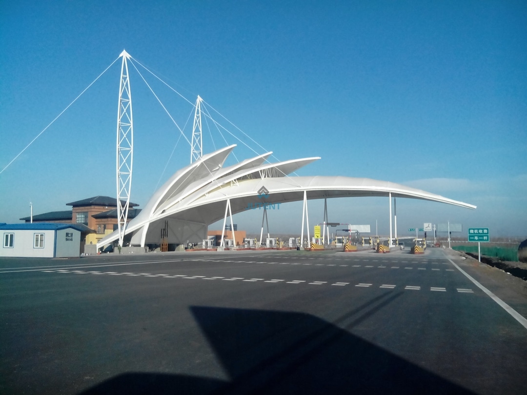 Highway toll station infrastructure requires resilient, high-clearance roofing solutions that ensure continuous operational flow and driver safety. Curved tensile membrane structures provide an aerodynamically stable and fire-resistant canopy system that integrates seamlessly with modern transportation networks.