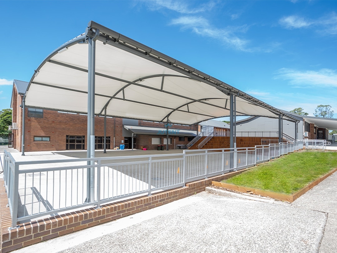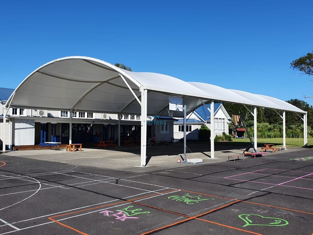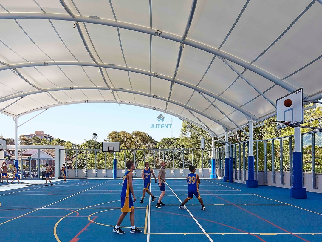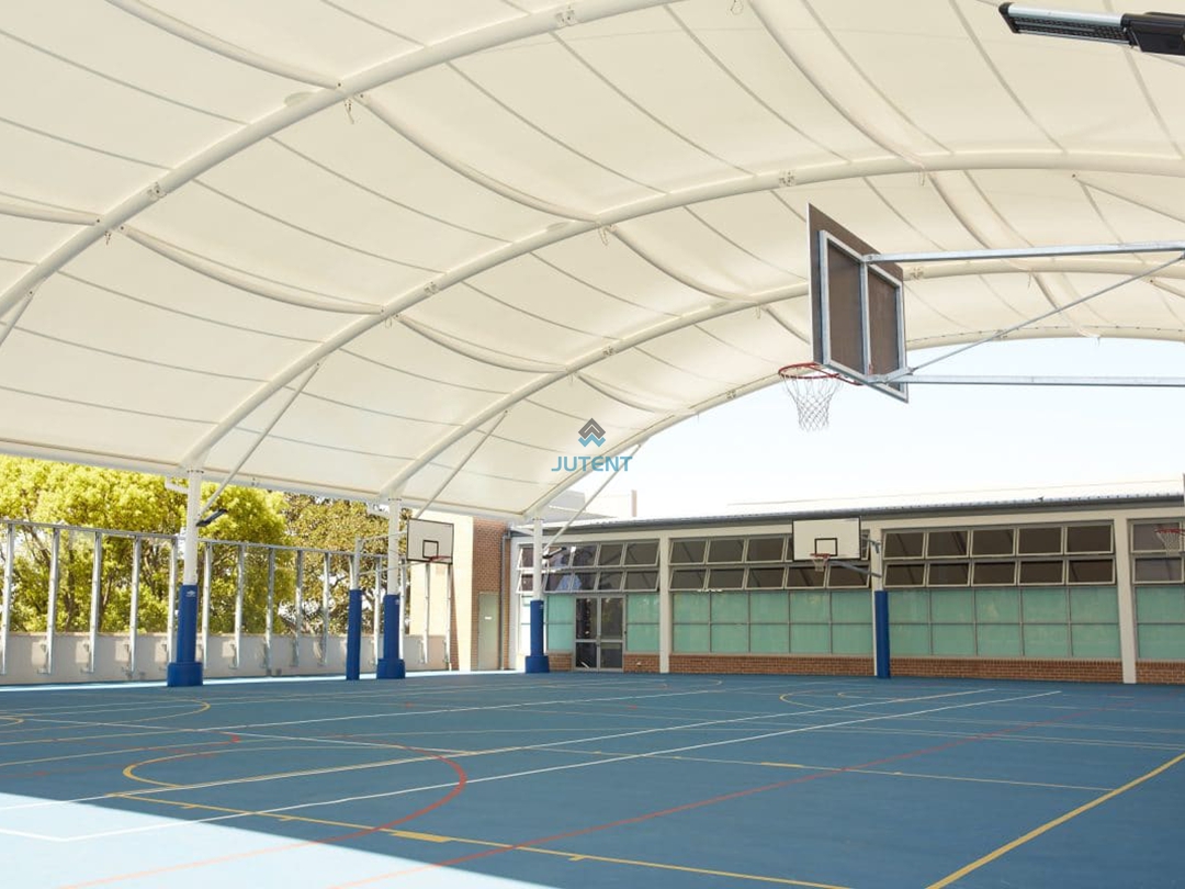 Curved Tensile Membrane Canopy for Basketball Courts