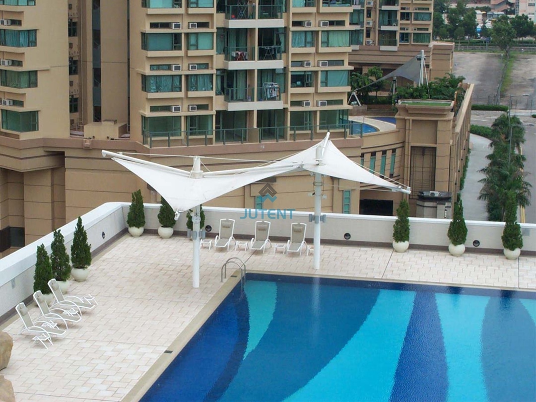 Resort Poolside Tensile Fabric Canopy for Outdoor Seating and Lounge