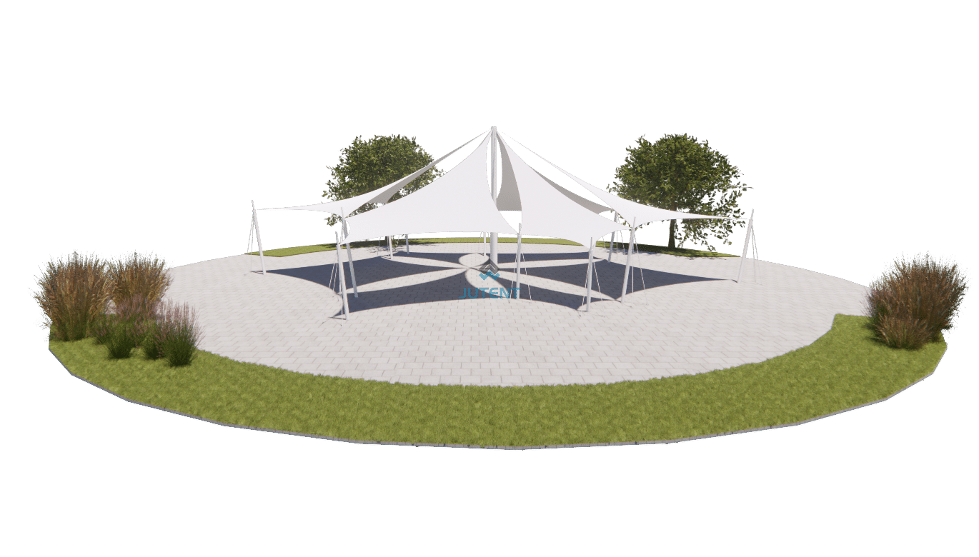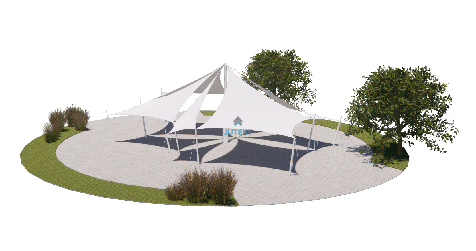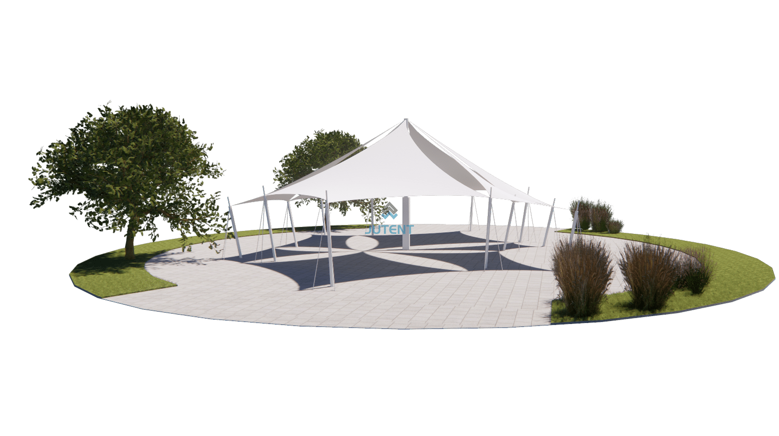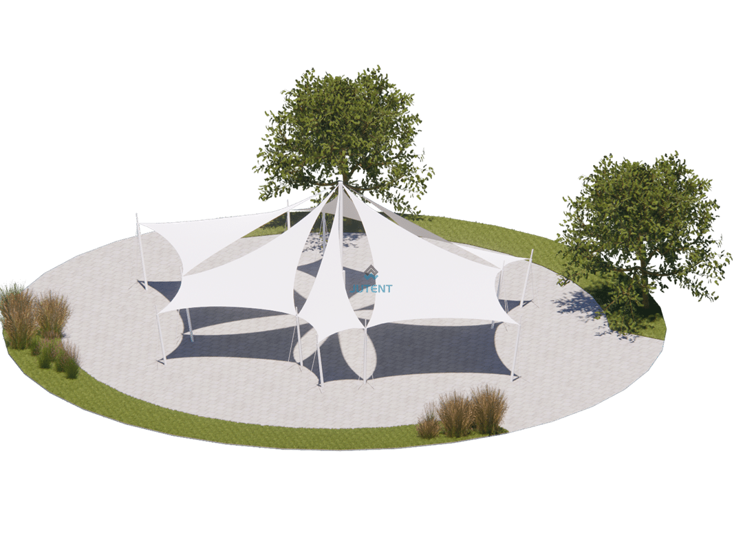 Landscape tensile membrane structures designed for parks, plazas, and public spaces. These architectural membrane canopies provide modern aesthetics, durable shading, and customizable designs for a wide range of outdoor landscape applications.