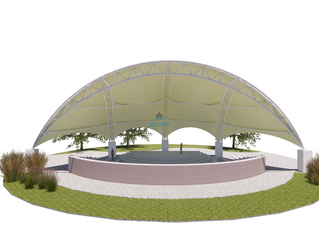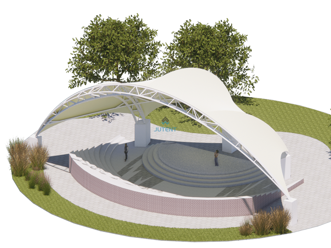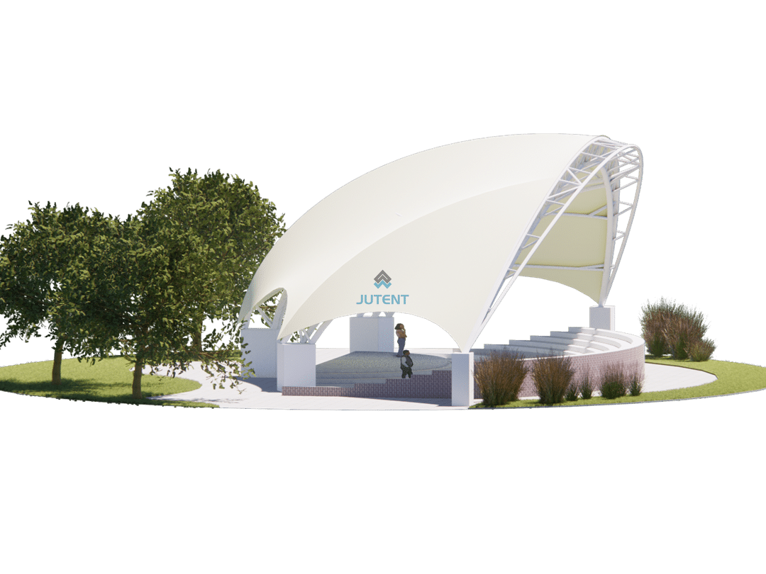 Shell-shaped tensile membrane stage roof with elegant design, practical performance