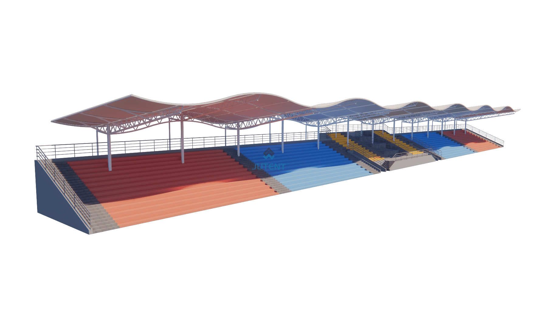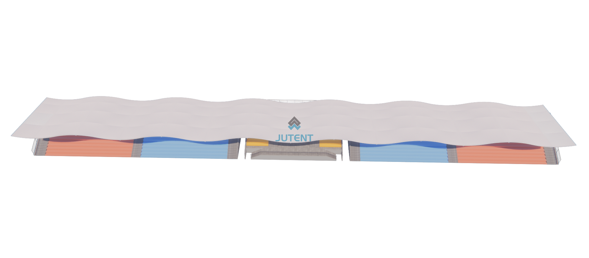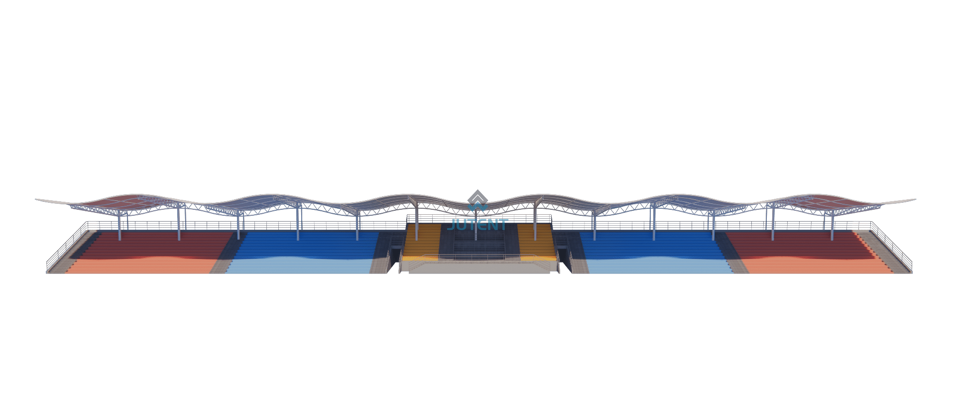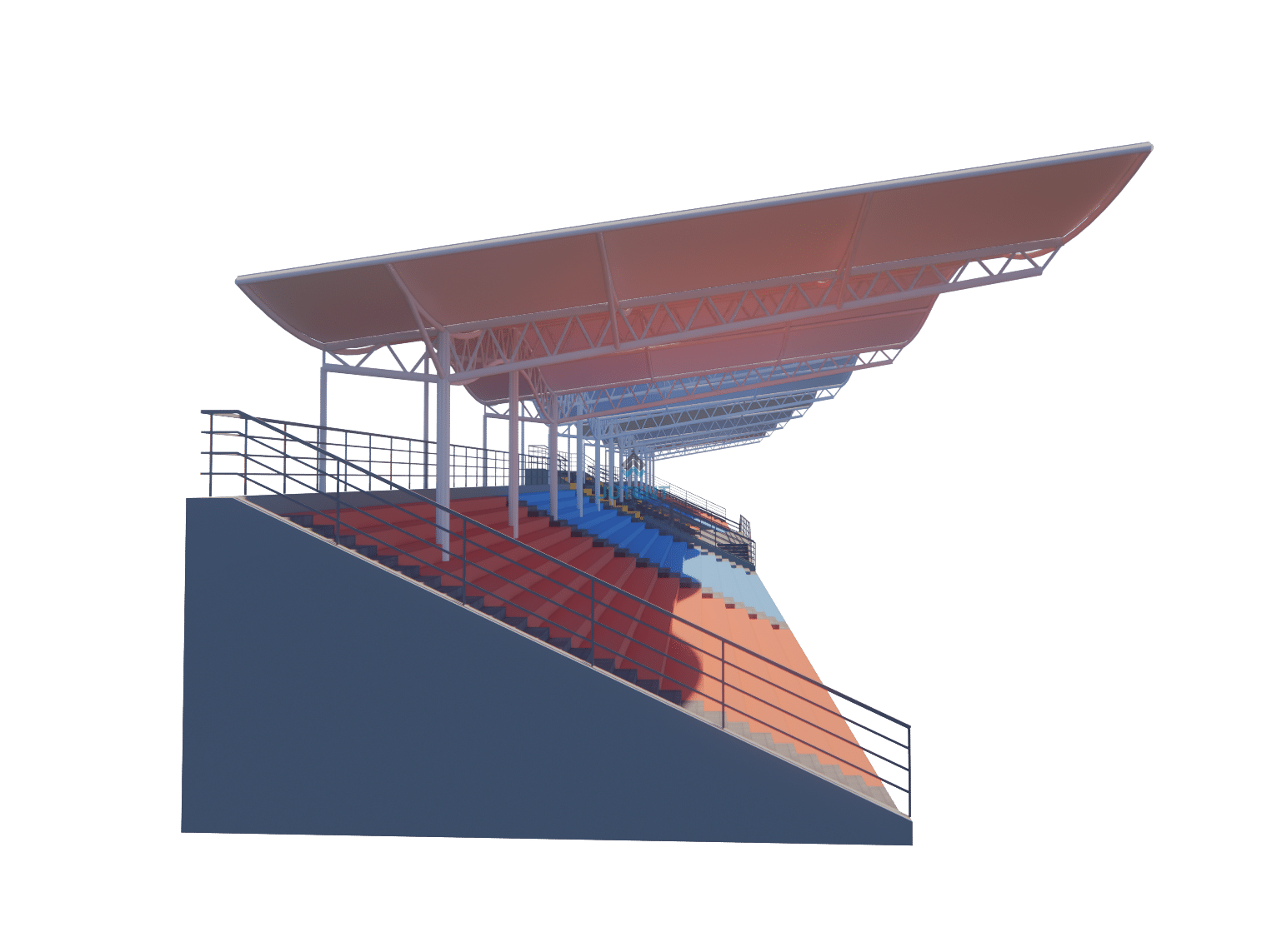 This grandstand canopy is designed at 125 m × 16 m and can be customized based on the actual grandstand dimensions.