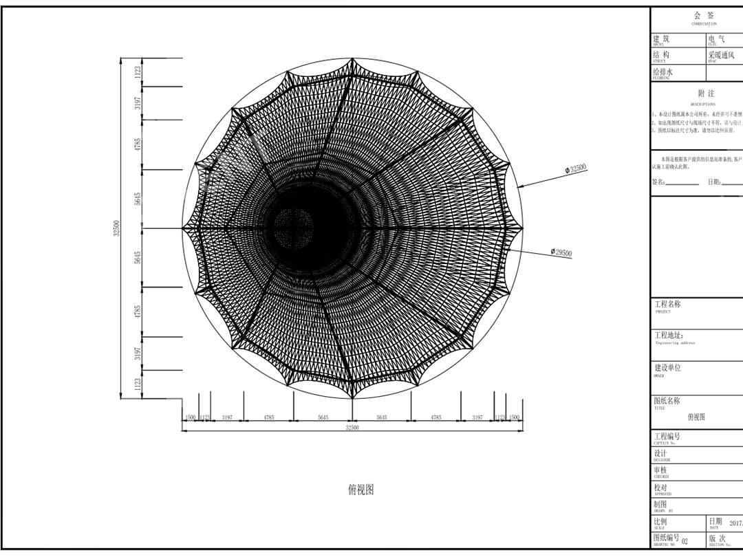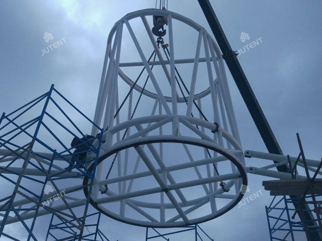 During the design phase, multiple technical meetings were held to evaluate site conditions and structural requirements. A circular hat-shaped tensile membrane solution was proposed, supported by comprehensive structural analysis and load calculations. The structure configuration and member parameters were optimized several times to ensure structural safety, and the final design was approved by the client after verification.