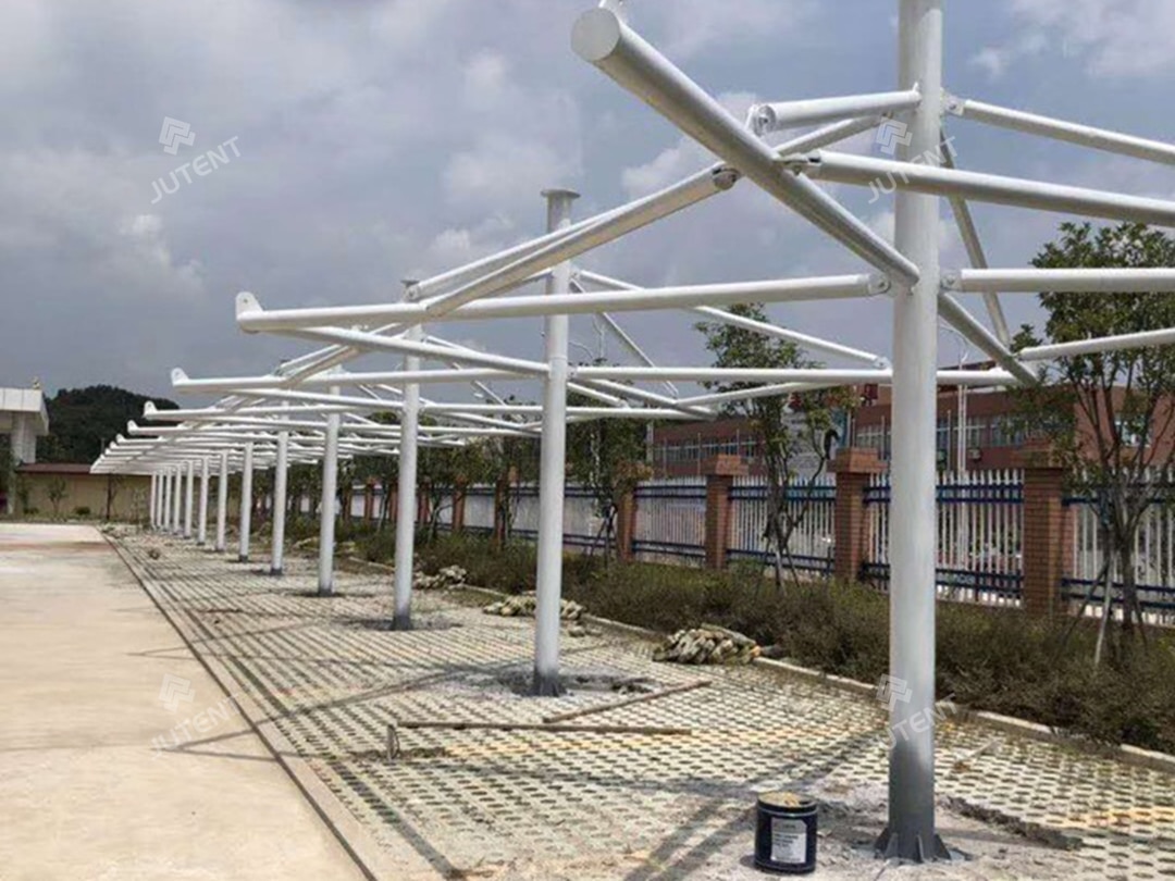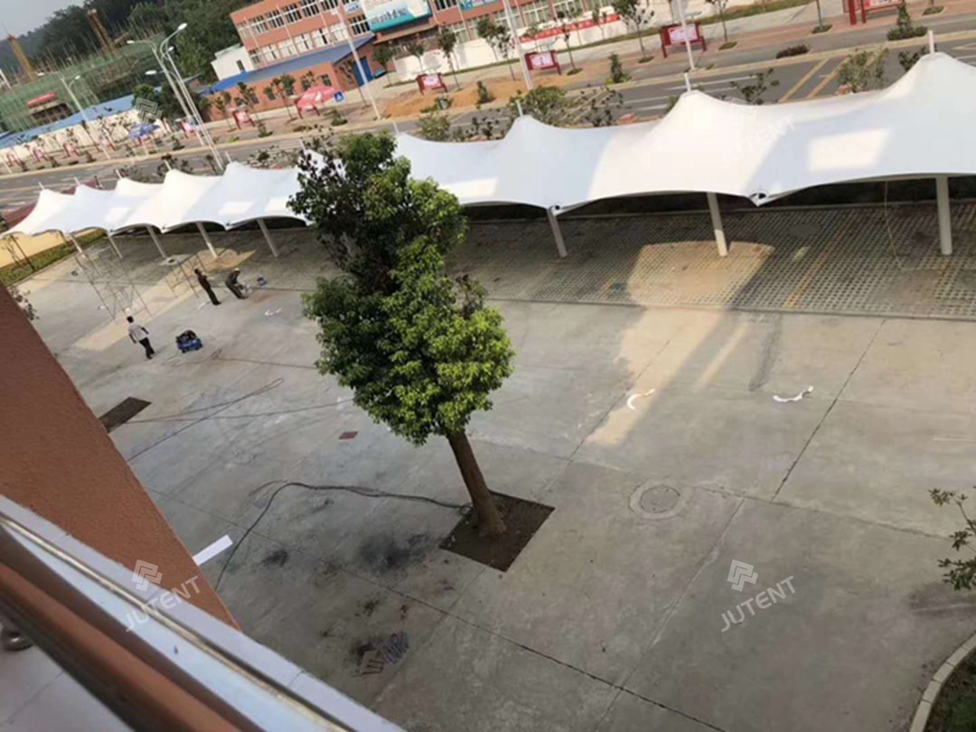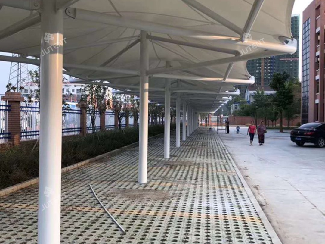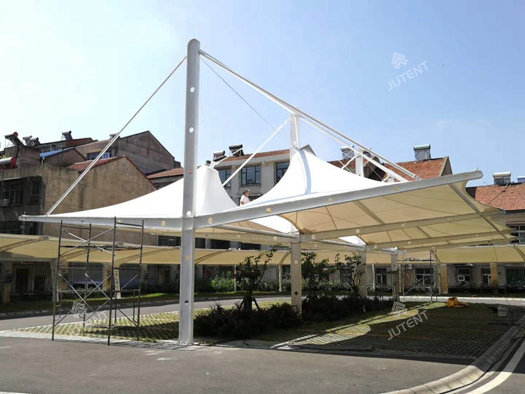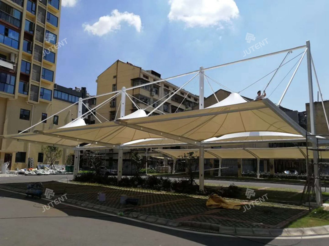 This tensile membrane carport solution is ideal for various parking facilities, offering a lightweight, durable, and visually appealing shelter solution.