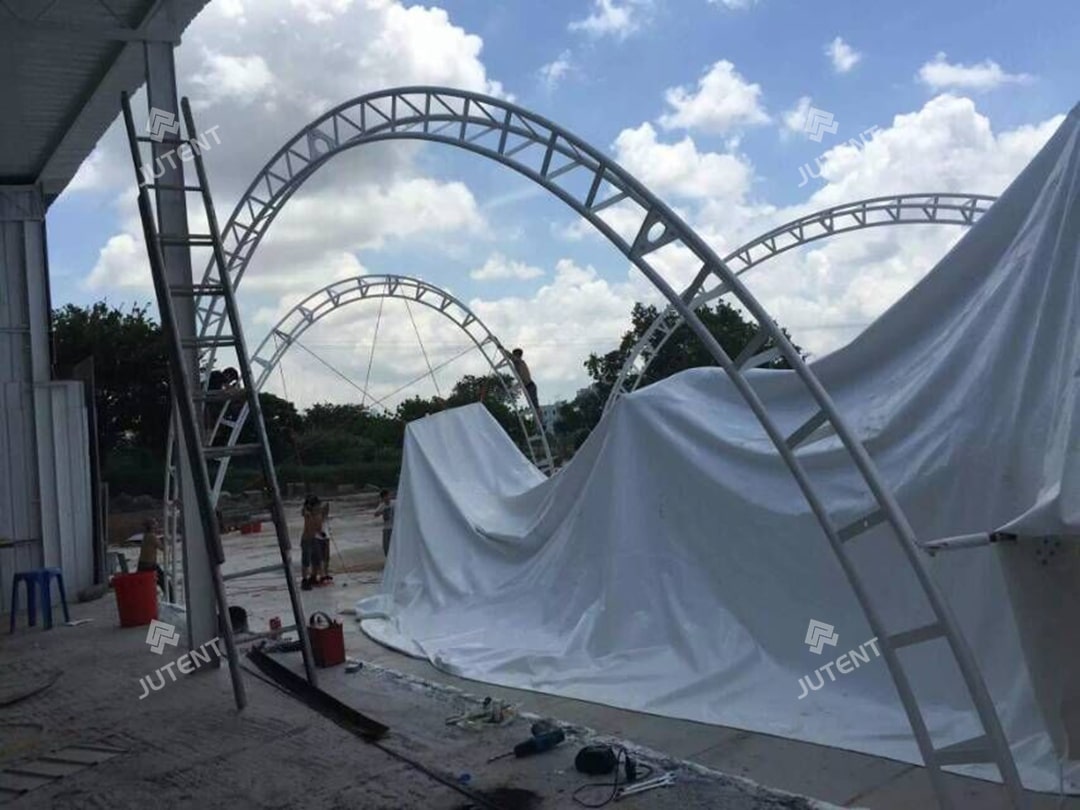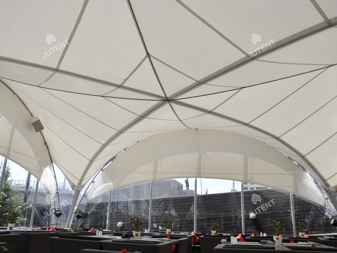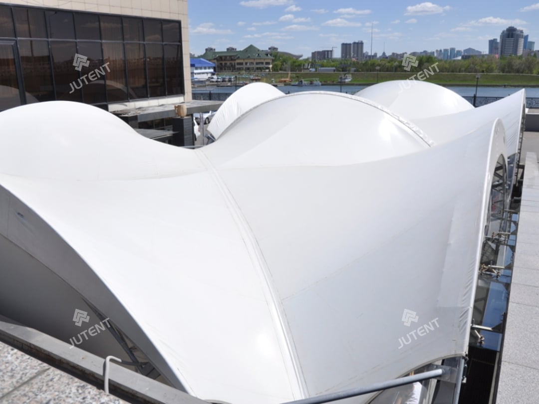 This project is located in Thailand and features a tensile membrane canopy for an outdoor café, primarily used in commercial leisure spaces. Completed in September 2020, the total coverage area is approximately 135 square meters. The main structure adopts a truss steel frame combined with white PVC membrane, presenting a clean and modern design that balances functionality and architectural aesthetics.