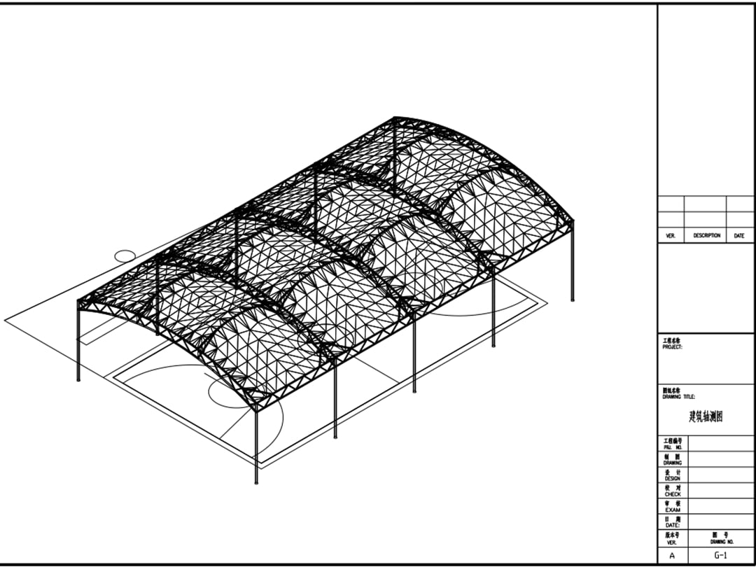 This project is located in Dutang Village, Jieyang City, China, and was completed by our company in April 2020. It is a tensile membrane canopy designed for a standard basketball court. The overall structure measures 32 m × 19 m, with a projected area of approximately 608 m². The steel structure uses about 19 tons of steel, and the membrane coverage area is approximately 700 m². The roof is covered with white PVDF architectural membrane (1100 g/m²), meeting B1 fire resistance standards and suitable for public sports facilities.