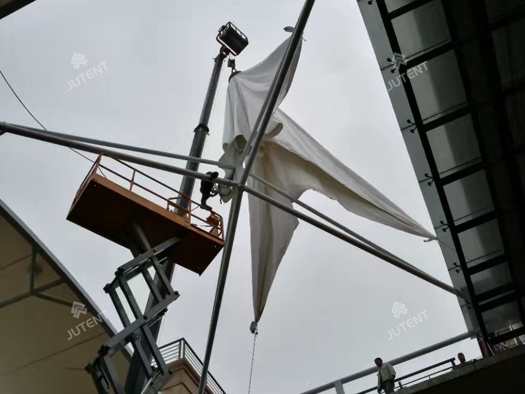 The installation was executed by our professional team using segmented assembly and multiple cranes to ensure uniform membrane tension and precise alignment. The project was completed efficiently on schedule, meeting both functional and aesthetic requirements.