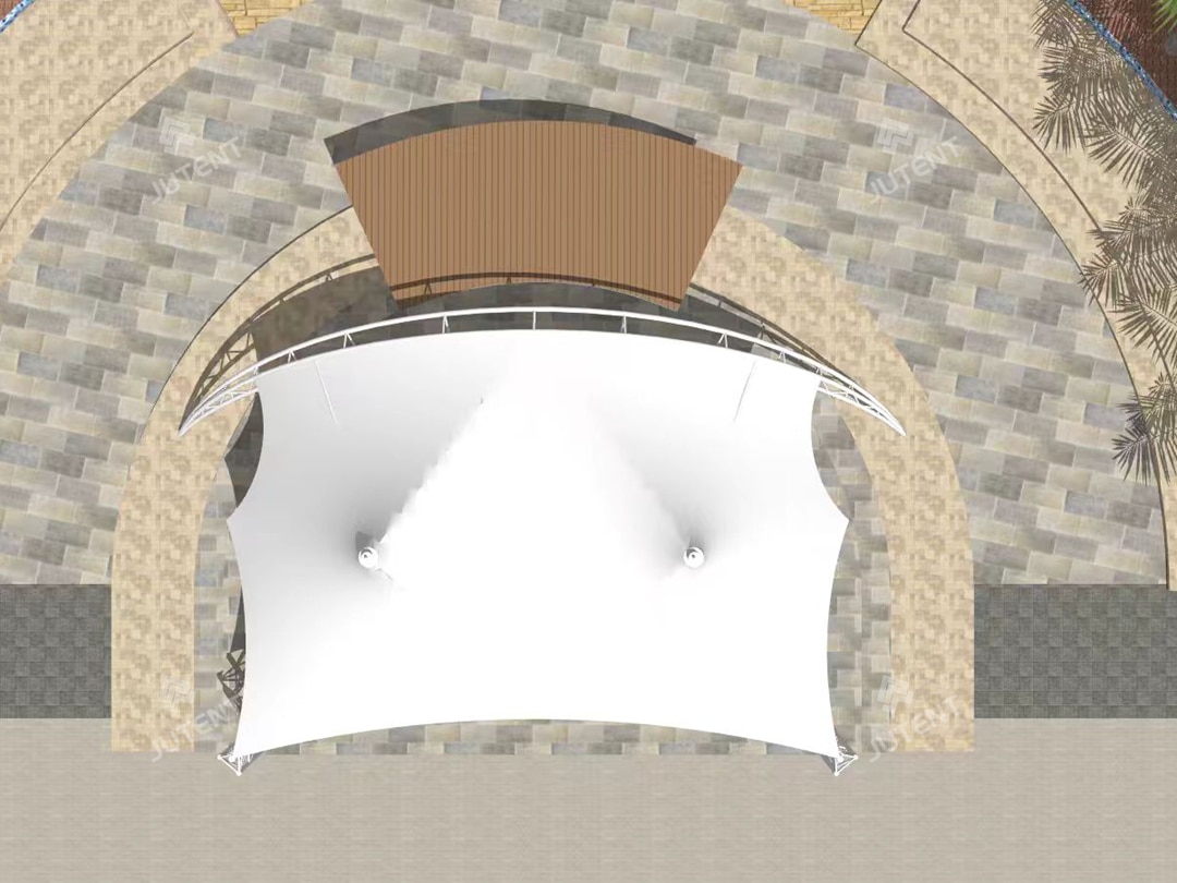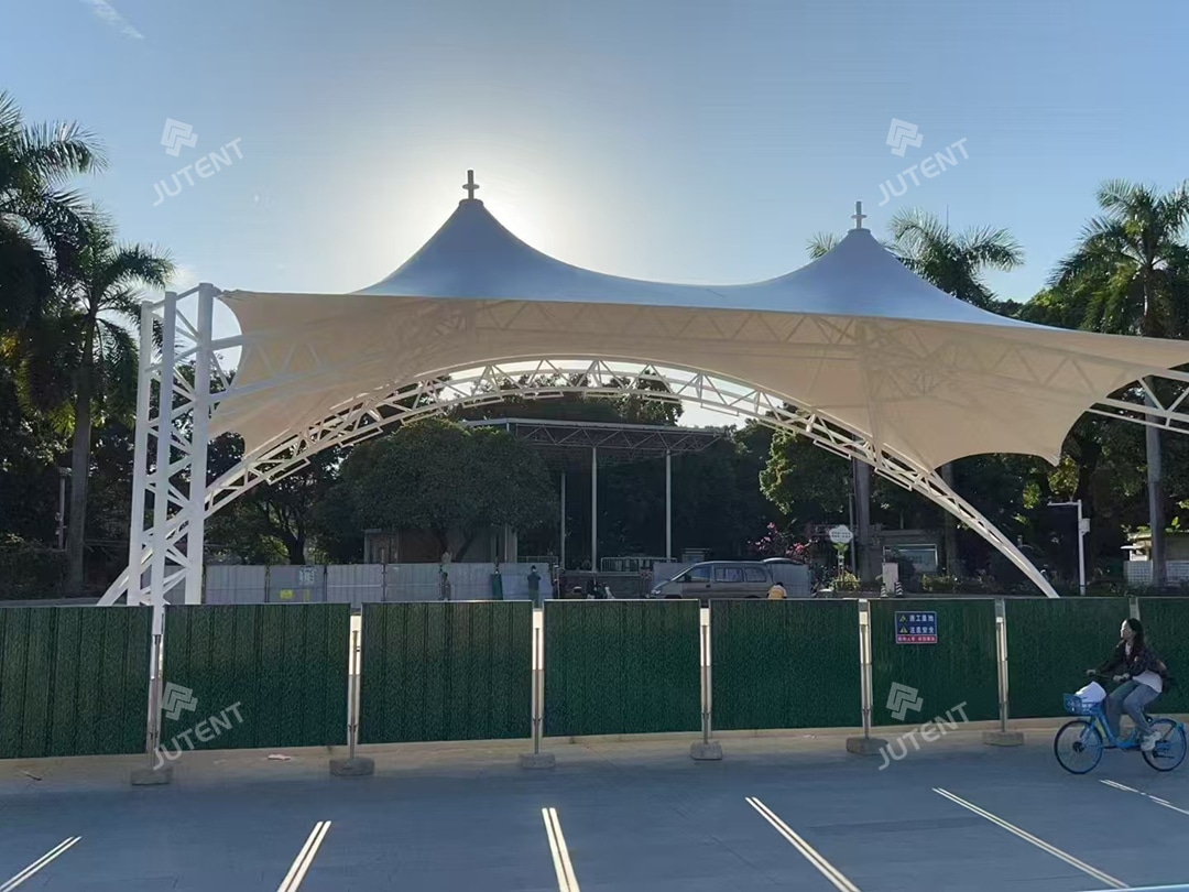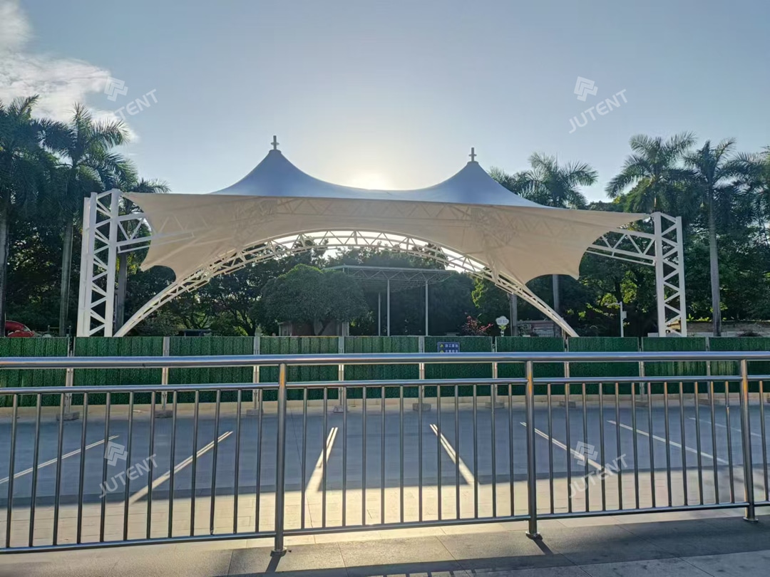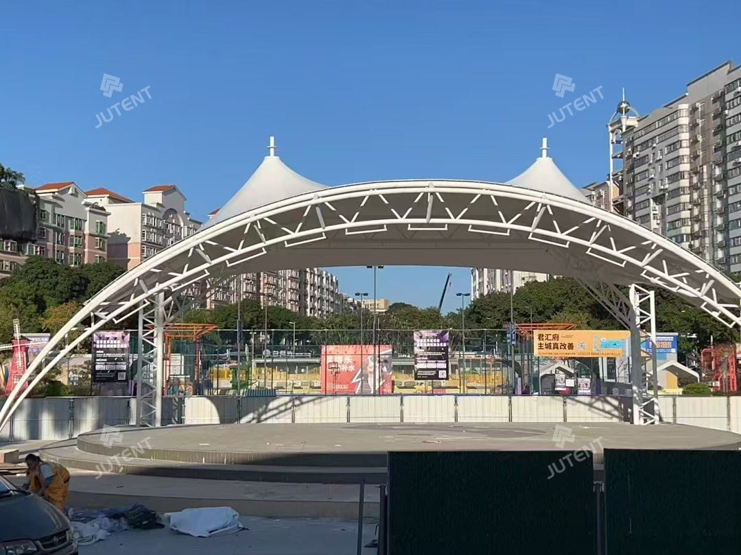 Curved stage tensile membrane structures are lightweight, visually appealing, and efficient to install, making them ideal for stages, grandstands, public event platforms, and various outdoor performance spaces.