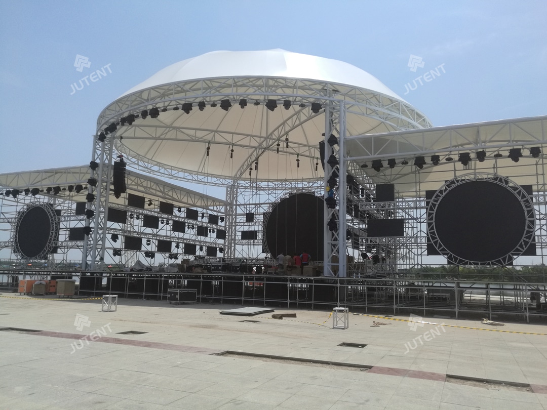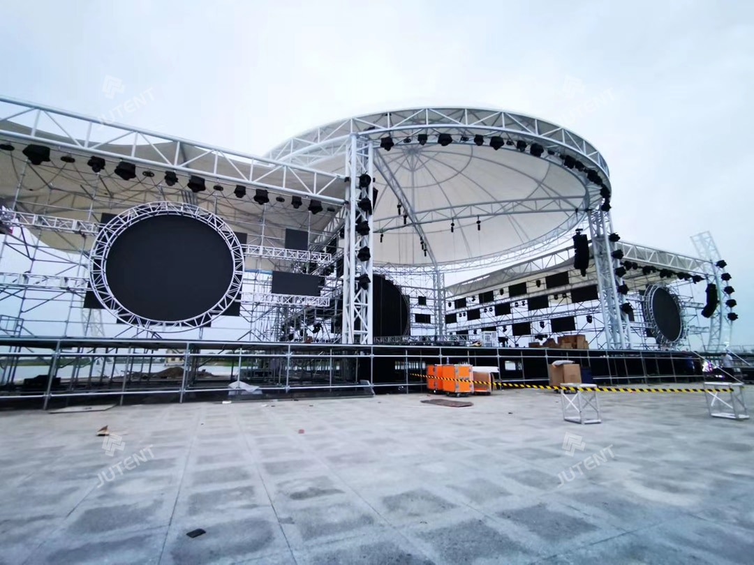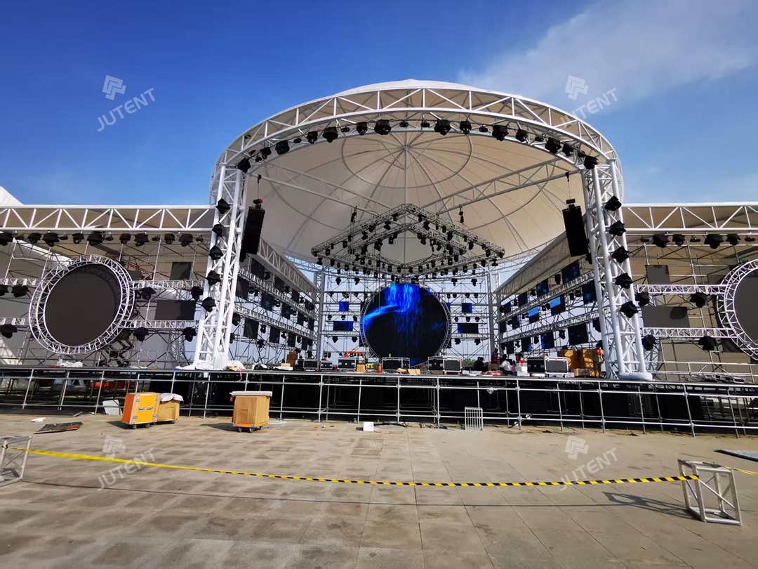 Circular stage tensile membrane structures are widely used in commercial performance stages, cultural and tourism projects, park event areas, and large public venues due to their lightweight structure, distinctive form, short construction cycle, and strong spatial adaptability.