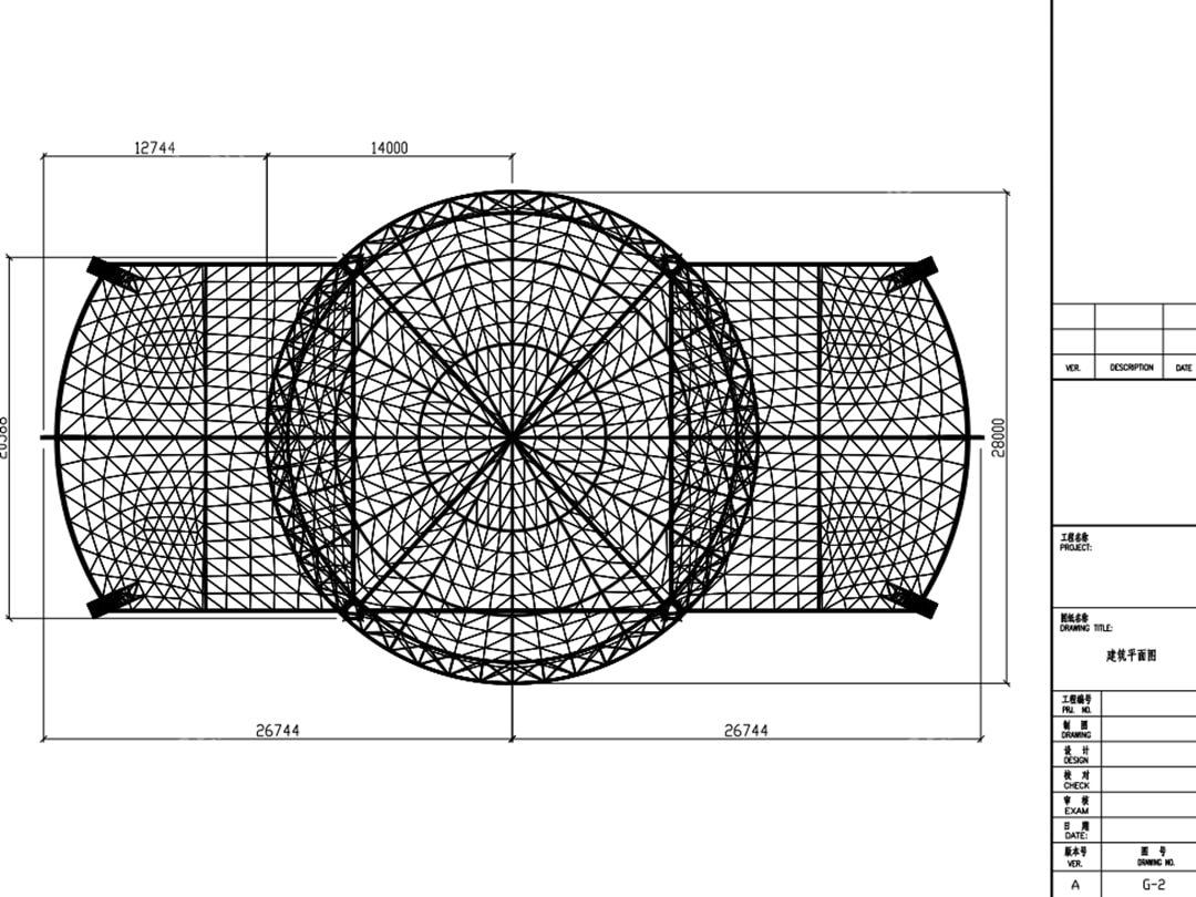 This project is located at Quanshuiwan Resort, Beichen District, Tianjin, China. It is a large-scale tensile membrane stage canopy completed in June 2020, with a total construction period of approximately 28 days. The total covered area is about 1,620 m², with overall dimensions of 54 m × 28 m. The core stage features a circular dome structure with a diameter of 28 m and a maximum height of approximately 19.5 m.