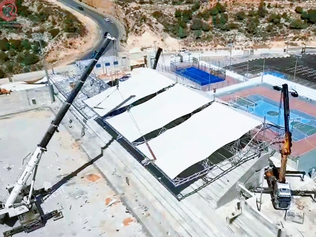 The tensile membrane grandstand roofing system adopted in this project is suitable for various stadium grandstands, football fields, and large public sports facilities.