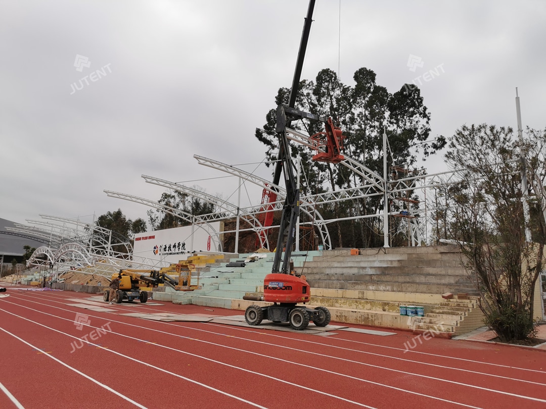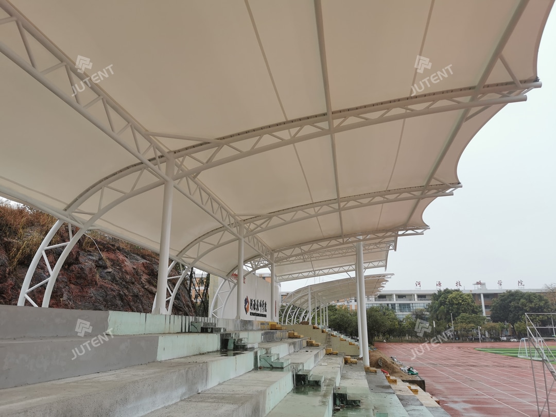 Grandstand tensile membrane structures are lightweight, visually striking, and quick to install. They are ideal for stadium grandstands, stages, and various public spaces. For similar projects or customized membrane canopy solutions, please contact our engineering team.