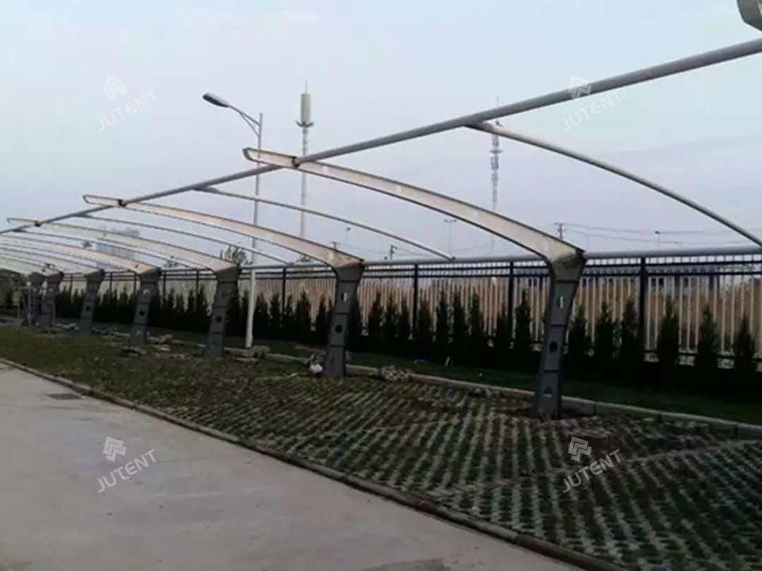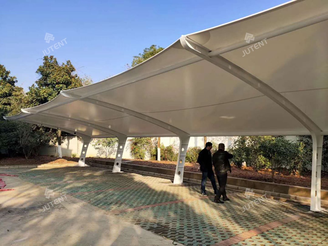 This tensile membrane carport solution is ideal for industrial parks, commercial parking lots, and public parking areas, offering a lightweight, durable, and visually appealing shading system.