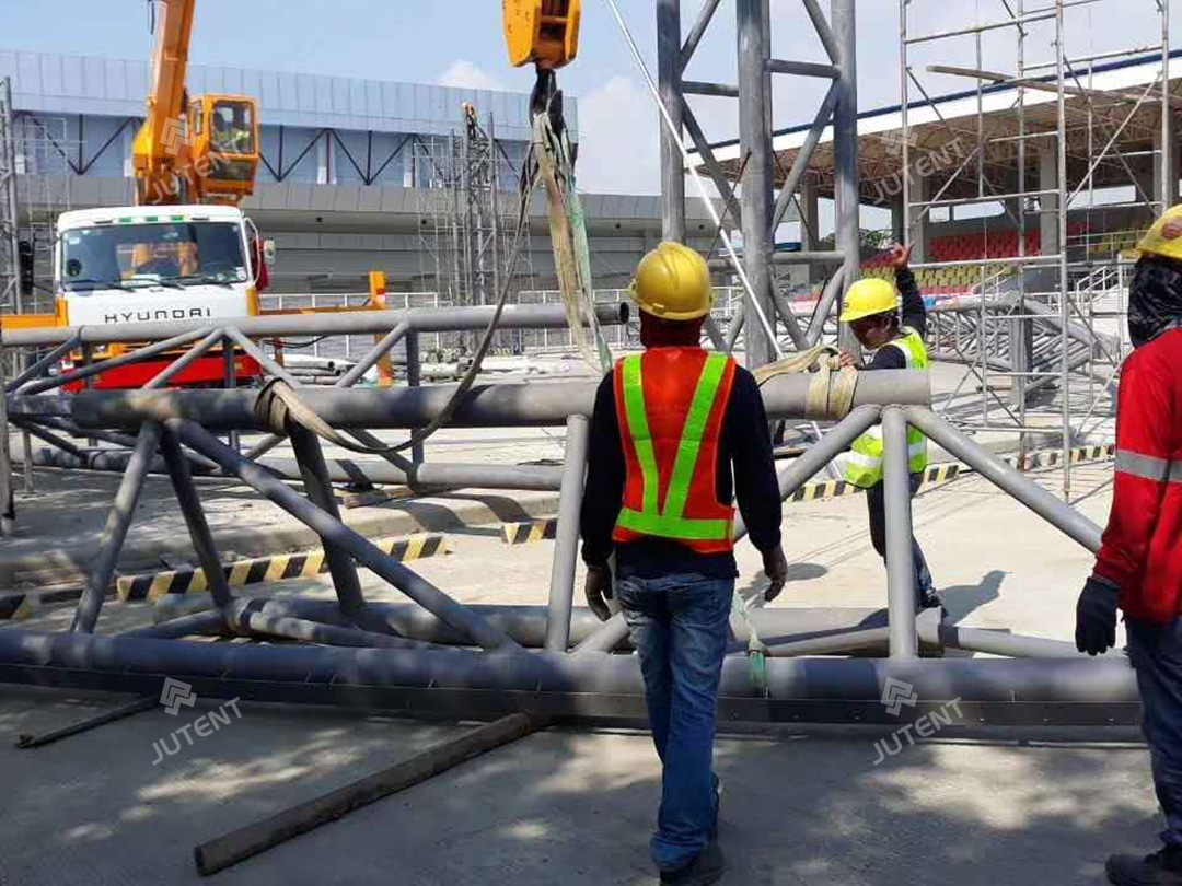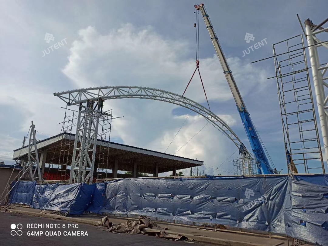 Installation was carried out under the on-site guidance of our engineering team. Due to the large span of the structure, a segmented lifting method was adopted: Hoisting and positioning of the main steel framework On-site anti-corrosion treatment Membrane installation and tensioning  With professional coordination and precise execution, the project was completed smoothly and delivered on schedule. The client expressed high satisfaction with our design expertise, manufacturing quality, and on-site technical support throughout the project lifecycle.