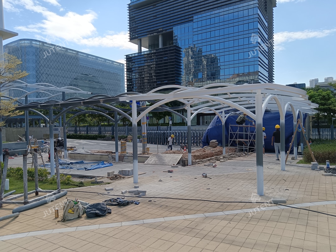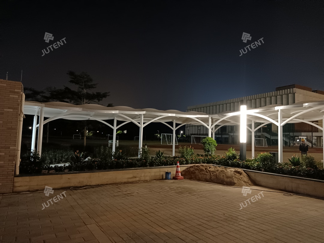 Through close coordination with the client, the project was completed on schedule and successfully delivered. The finished canopy provides reliable weather protection for students and staff while creating a distinctive architectural landmark within the campus.