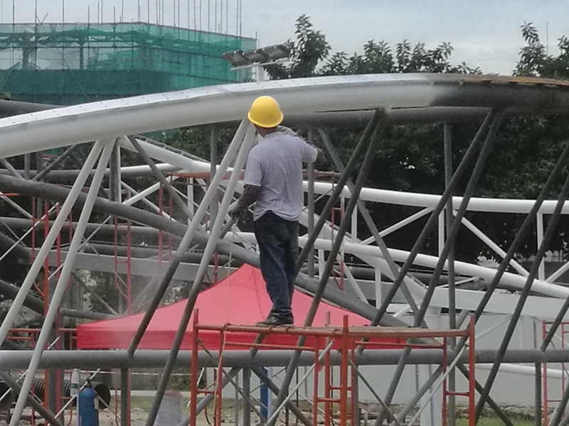 Steel components should be cleaned regularly to prevent rust from dust, salt, or other pollutants. In coastal or industrial areas, cleaning should be done more often. Repairs depend on the severity of damage: minor scratches are touched up, light rust is removed and recoated, and more serious corrosion is treated or replaced. With proper care, tensile structures, membrane structures, tensile tents, waterproof shade sails, and outdoor shade canopies remain safe, durable, and visually appealing for years.