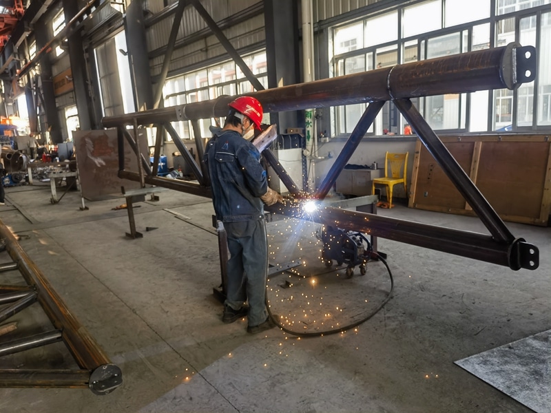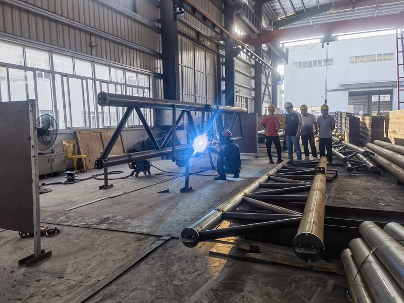 Our steel structure fabrication follows a professional and standardized workflow. Raw materials are procured strictly according to approved drawings, with thorough verification and inspection of material dimensions, thickness, and specifications. The complete process then includes sandblasting for rust removal, precision cutting, welding and assembly, and final surface coating for corrosion protection.