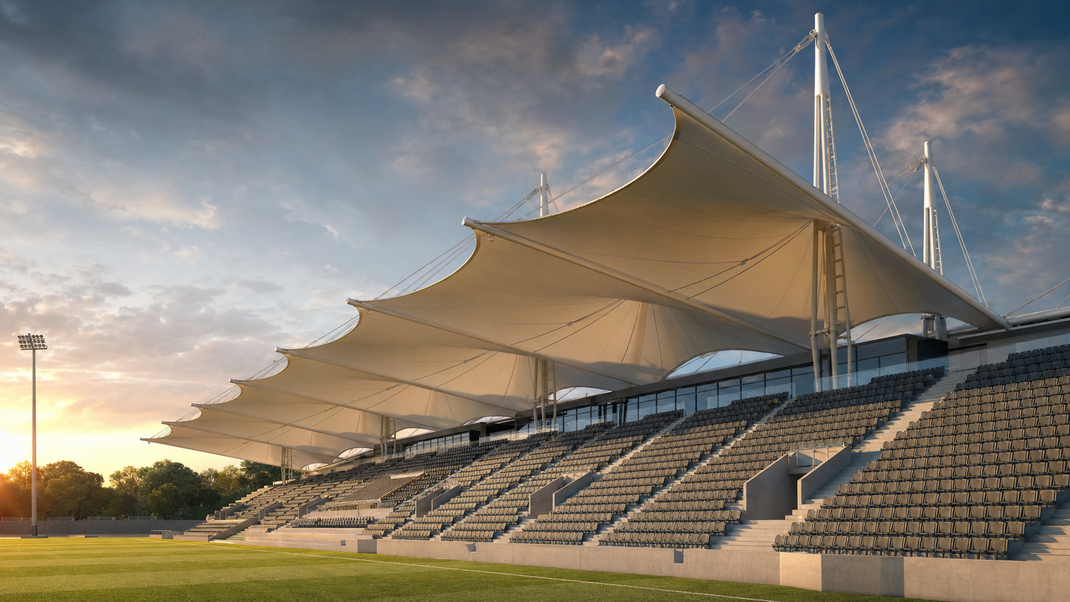 - Precise membrane form-finding with Easy software for elegant, stable, and acoustically optimized grandstand roofs.